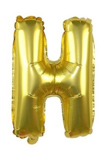 Balon foliowy litera H o wysokości ok 70cm (62-65cm po napompowaniu) w kolorze ZŁOTY. Balon posiada zawór, dzięki czemu powietrze nie uchodzi po napompowaniu. Literka posiadają "oczka" do montażu za pomocą żyłki / tasiemki tworząc w ten sposób balonową girlandę, można również przytwierdzić do ściany za pomocą kropek klejowych do balonów.