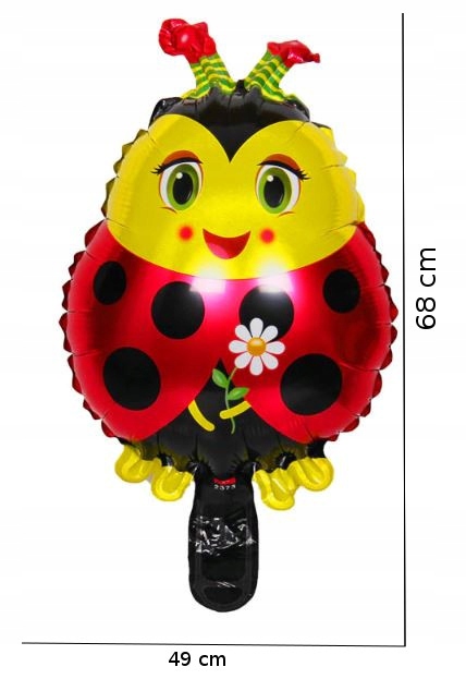 Balon foliowy biedronka o wysokości ok 68cm. Balon posiada zawór, dzięki czemu powietrze nie uchodzi po napompowaniu.