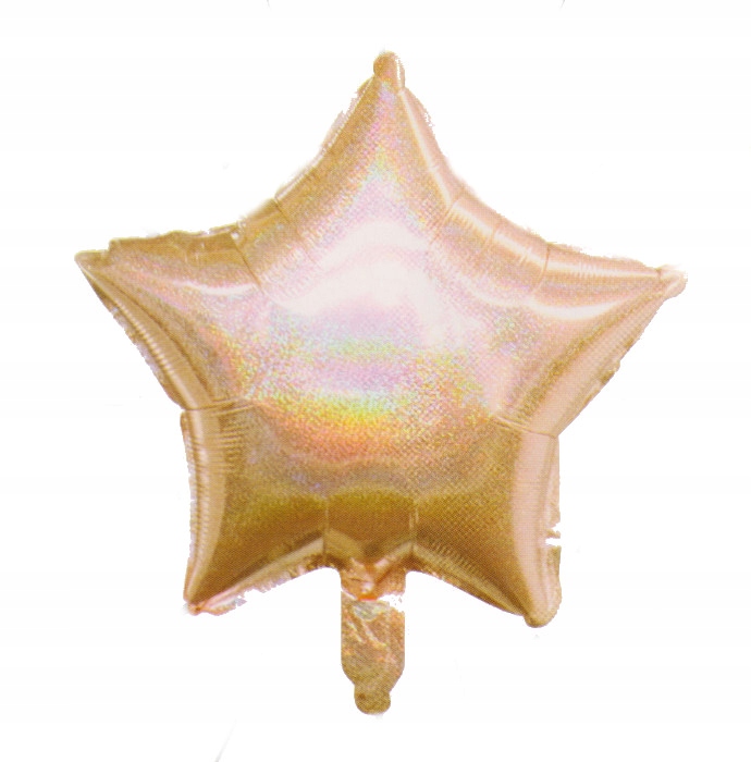 Balon foliowy gwiazda o wysokości ok 45 cm w kolorze ROSE GOLD holograficznym. Balon posiada zawór, dzięki czemu powietrze nie uchodzi po napompowaniu.