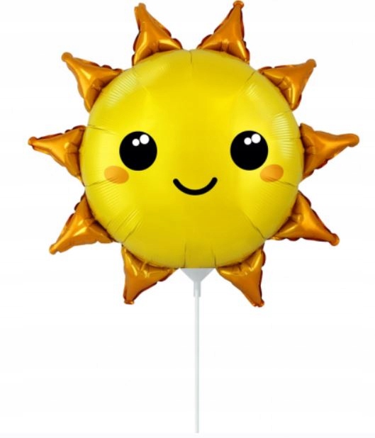 Balon foliowy słońce o wysokości (przed napełnieniem) ok 35 cm w kolorze połyskującego żółtego. Balony można przytwierdzić do ściany za pomocą kropek klejowych do balonów lub umieścić na patyczku.