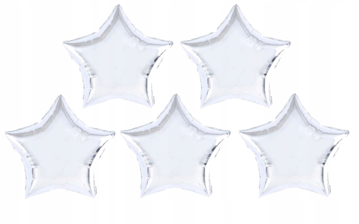 Balony foliowy gwiazda zestaw 5 sztuk o wymiarach ok 25 x 25cm w kolorze srebrnym metalicznym. Balon posiada zawór, dzięki czemu powietrze nie uchodzi po napompowaniu.