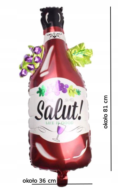Balon foliowy wino o wysokości ok 81 cm. Balon posiada zawór, dzięki czemu powietrze nie uchodzi po napompowaniu.