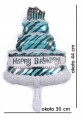 Balon foliowy tort z napisem happy birthday o wysokości ok 44 cm. Balon posiada zawór, dzięki czemu powietrze nie uchodzi po napompowaniu.
