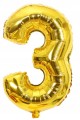 BALON foliowy złoty cyfra TRZY 3 urodziny 70 cm