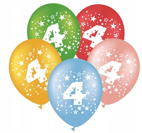 BALON gumowy urodzinowy MIX kolor CZTERY 4 5 sztuk