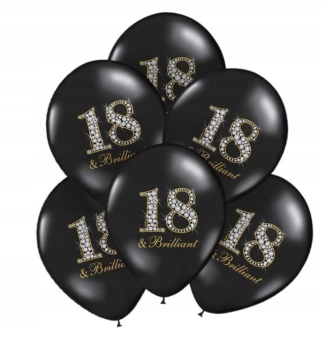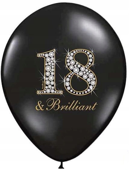 BALON gumowy urodzinowy czarny 18 osiemnastka 6szt