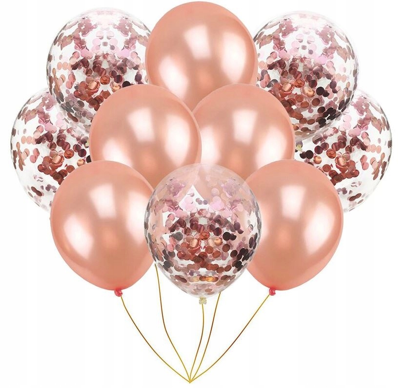 ZESTAW BALONÓW GUMOWYCH Z KONFETTI w kolorze złotym ROSE GOLD. Nieodłączny element każdego urodzinowego przyjęcia.Rewelacyjnie sprawdzi się również jako element dekoracji wielu jubileuszowych uroczystości, URODZINY, ŚLUBY , WESELA DO DEKORACJI SAL, SAMOCHODÓW NA WALENTYNKI ITD...