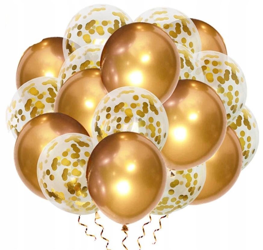 BALONY chrom shiny 12" ZŁOTE 20 szt konfetti