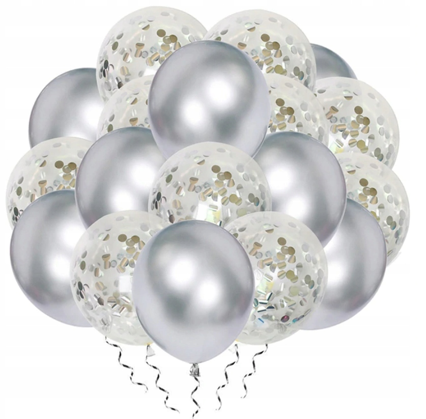 BALONY chrom shiny 12" srebrne 20szt konfetti