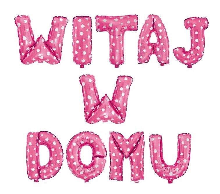 Zestaw balonów układających się w napis WITAJ W DOMU w kolorze różowym