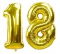 - balony Metaliczne złote z białym nadrukiem happy birthday i cyfrą 18- Wielkość około 30 cm - 4 sztuk