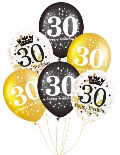 Zestaw balonów dekoracyjnych na 30 urodziny. Rewelacyjnie sprawdzi się również jako element dekoracji.