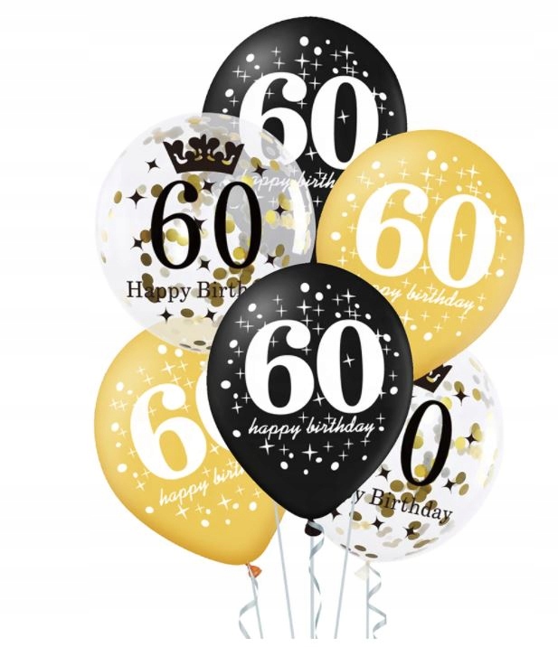 Zestaw balonów dekoracyjnych na 60 urodziny. Rewelacyjnie sprawdzi się również jako element dekoracji.