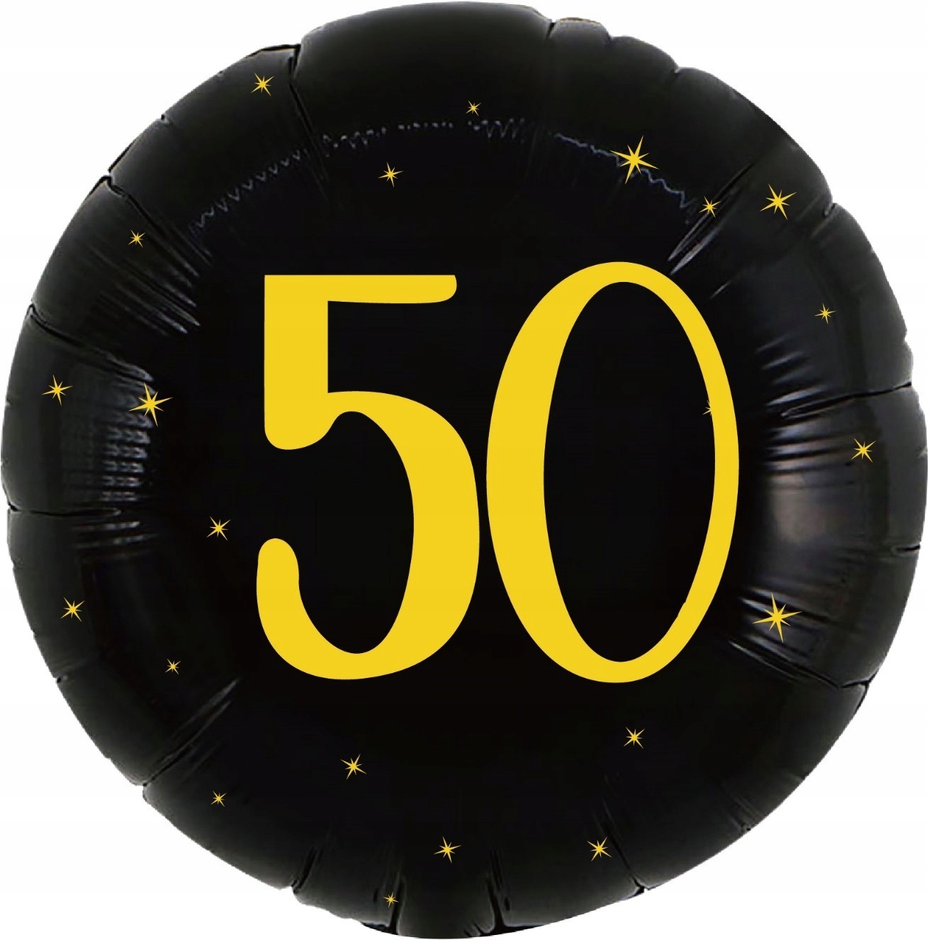 Balon foliowy czarny okrągły 50 urodziny pięćdziesiątka złoty nadruk 43 cm