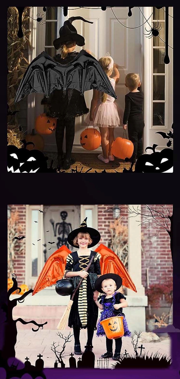 Balon foliowy skrzydła nietoperza pomarańczowo-czarne przebranie 115x52 cm