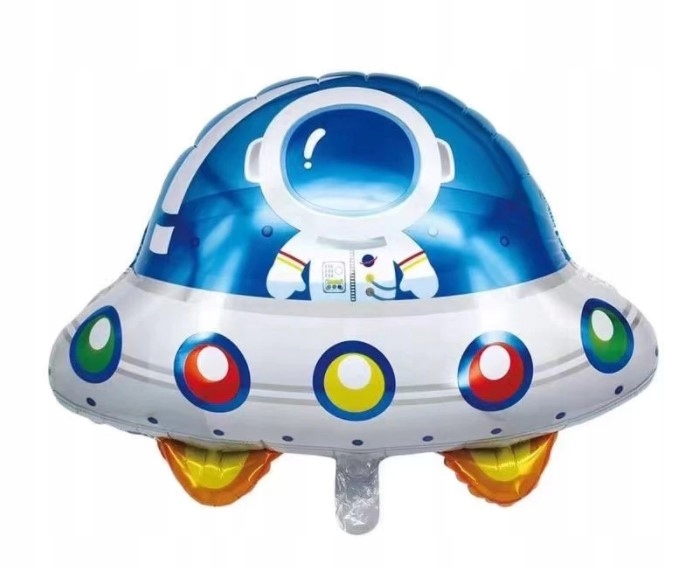 Balon foliowy w kształcie statku kosmicznego stworzy piękną dekorację urodzinową.