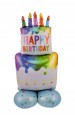 Balon foliowy tort 3D tęczowy biały URODZINY 120cm