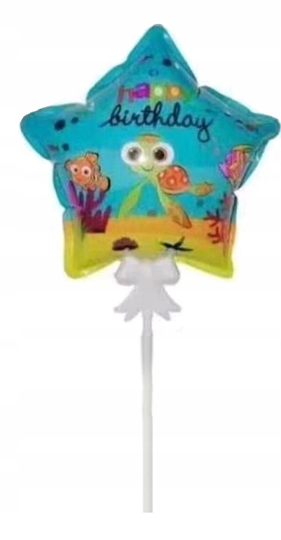 Balon gwiazdka samopompujący z żółwikiem na patyku z konfetti w środku