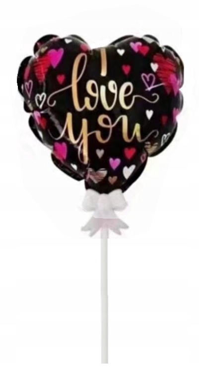 Balon serce samopompujący z napisem I Love You na patyku z konfetti w środku