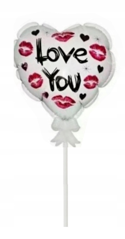 Balon serce samopompujący z napisem I Love You na patyku z konfetti w środku
