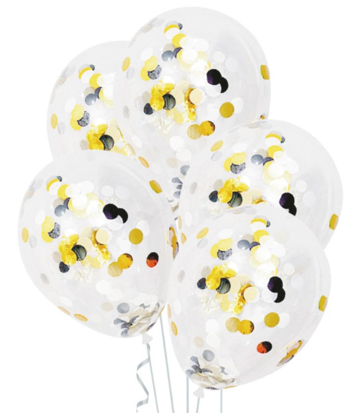 Balony krystaliczne 12" z czarno złotym konfetti.