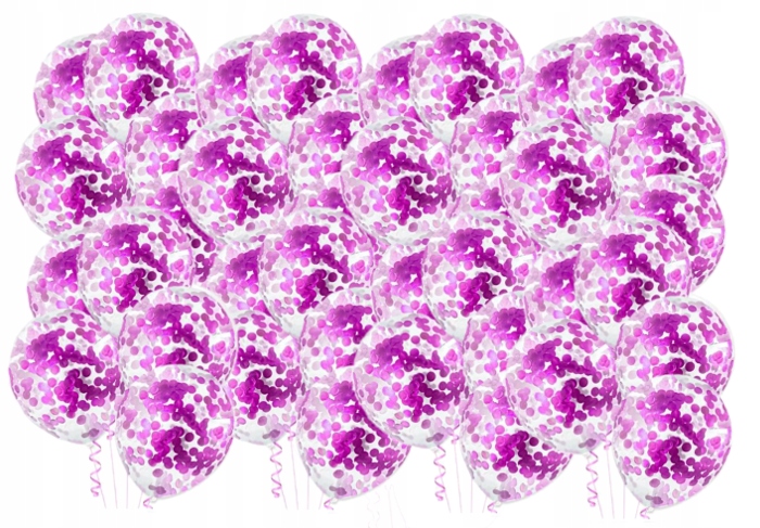- konfetti w kolorze fioletowym już w baloniku