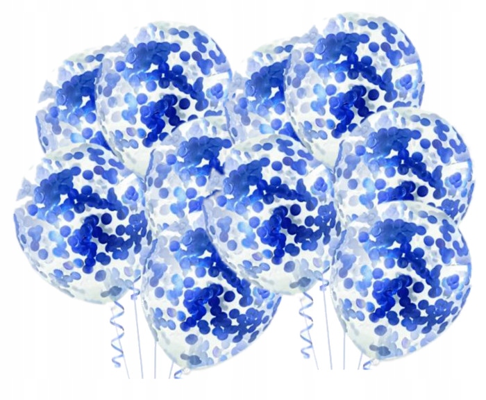 Balon krystaliczny lateksowy z prawdziwym niebieskim konfetti w środku.Rewelacyjnie sprawdzi się jako element dekoracji wielu jubileuszowych uroczystości, URODZINY, BABY SHOWER, ŚLUBY, WESELA - DO DEKORACJI SAL, SAMOCHODÓW NA WALENTYNKI ITD...