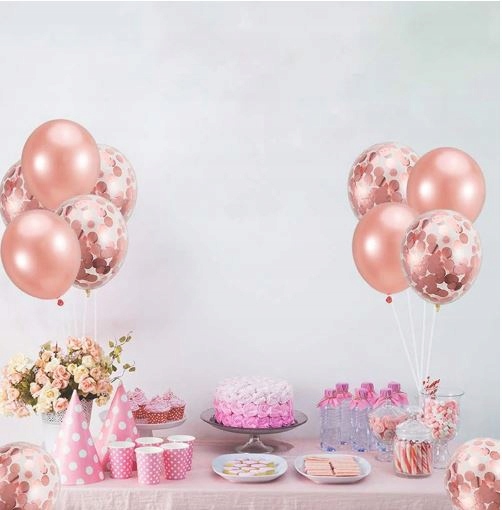 Tu Kupujesz 100 szt. balonów krystalicznych 12" z konfetti rose gold.