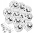 - konfetti w kolorze srebrnym już w baloniku