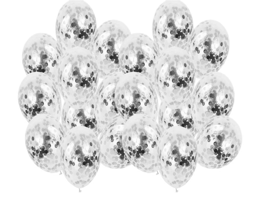 Balony duże przezroczyste srebrne konfetti 50 szt