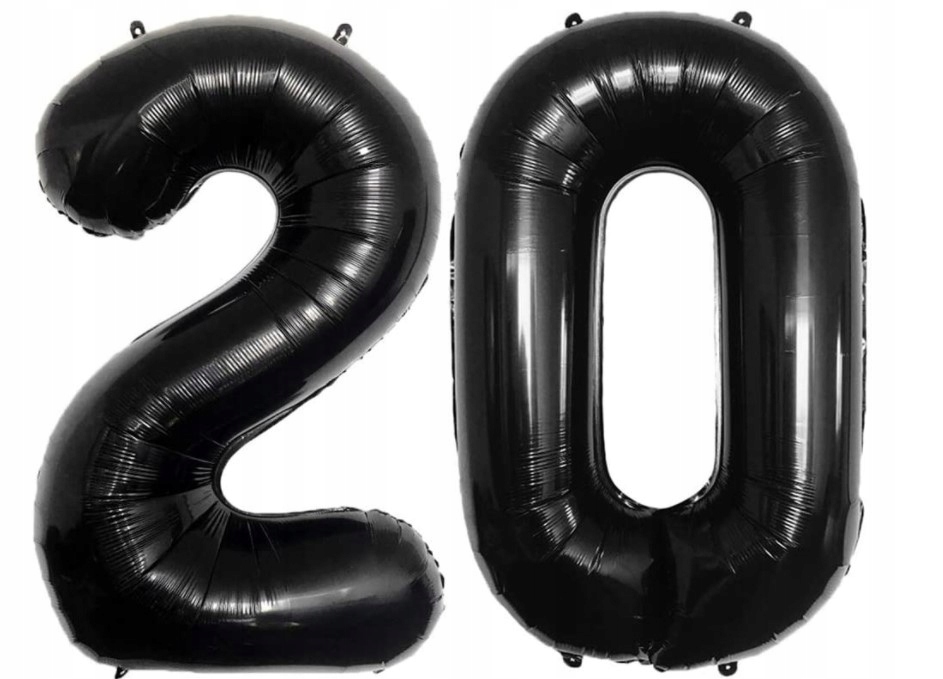 Balony foliowe cyfry 20 urodziny czarne hel 100cm
