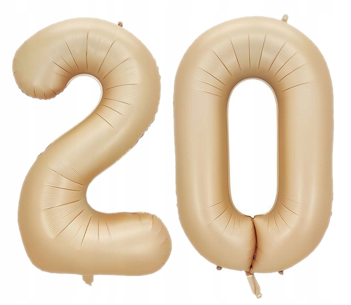Balony foliowe cyfry 20 urodziny kremowe hel 100cm