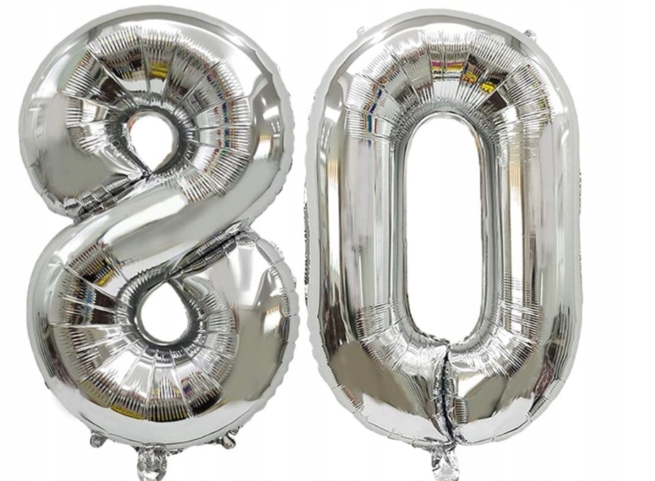 Balony foliowe cyfry 80 urodziny srebrne hel 70 cm