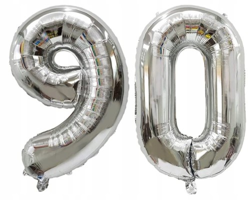 Balony foliowe cyfry 90 urodziny srebrne 40cm part