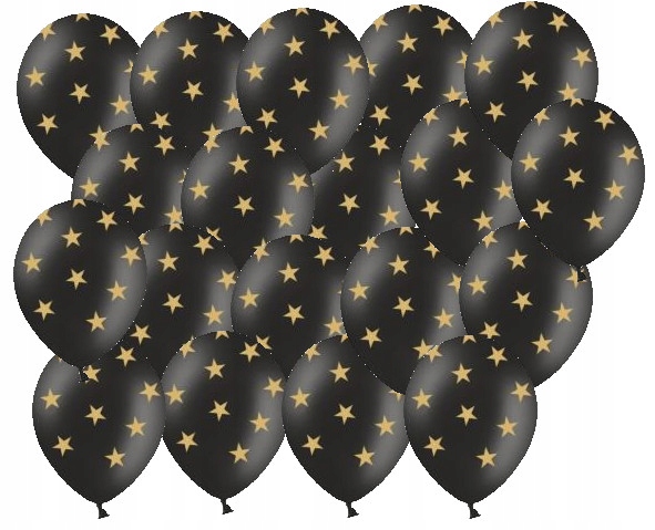 Balony lateksowe czarne ze złotymi gwiazdkami.