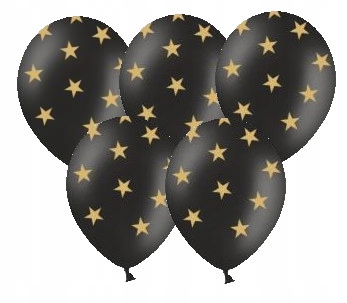 Balony lateksowe czarne ze złotymi gwiazdkami.