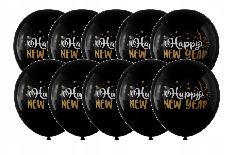 Balony lateksowe czarne ze złotym białym napisem Happy New Year 30 cm 10szt