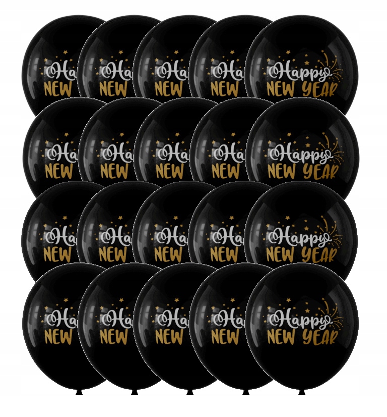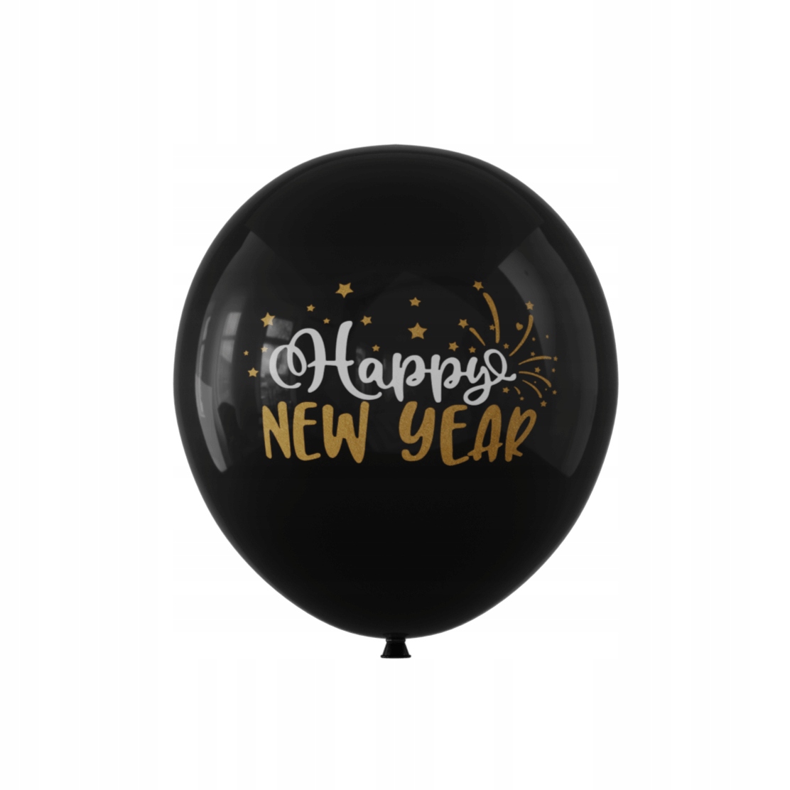 Balony lateksowe czarne ze złotym białym napisem Happy New Year 30 cm 20szt