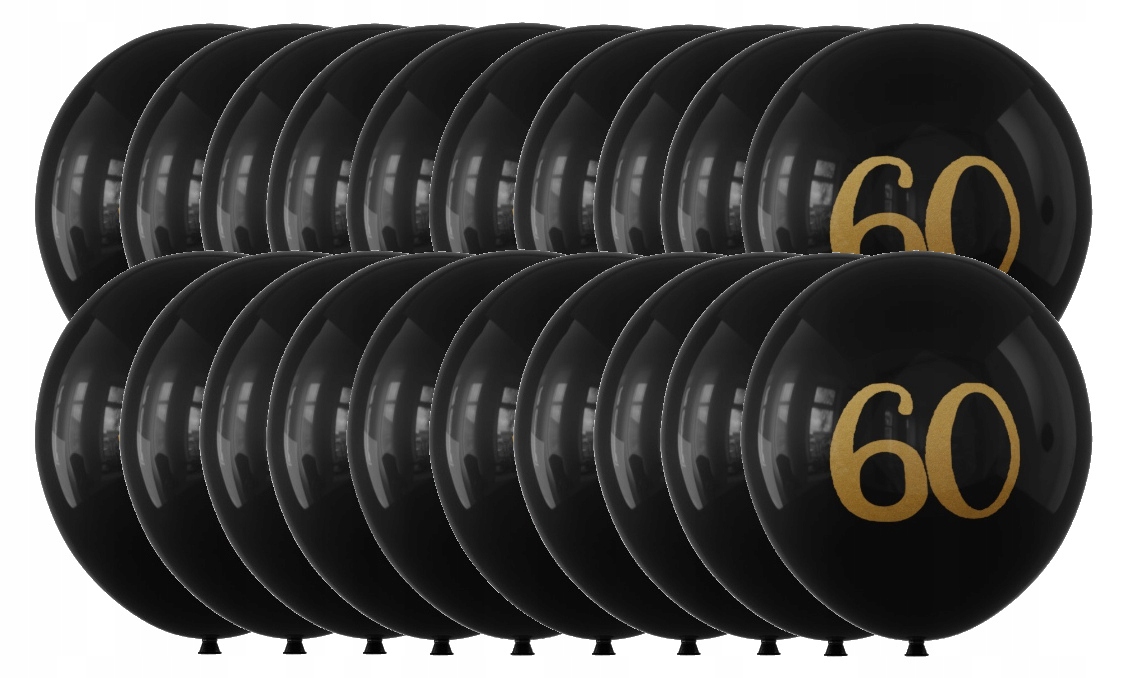 Balony lateksowe czarne złote sześćdziesiątka 60-tka 30 cm zestaw 20 szt.