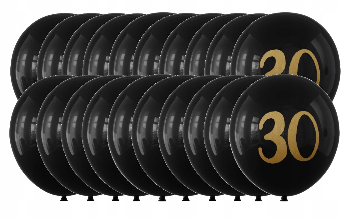 Balony lateksowe czarne złote trzydziestka 30-stka 30 cm zestaw 20 szt.