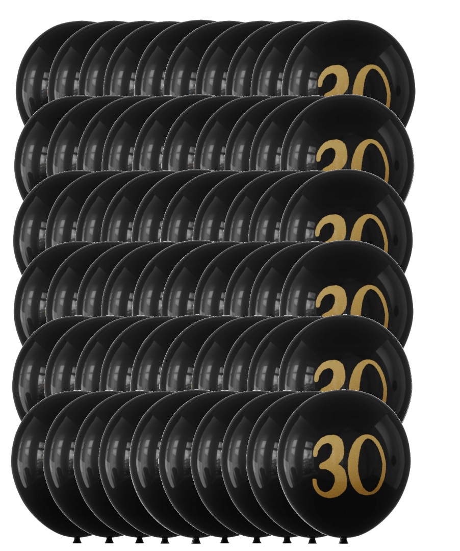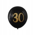 Balony lateksowe czarne złote trzydziestka 30-stka 30 cm zestaw 50 szt.