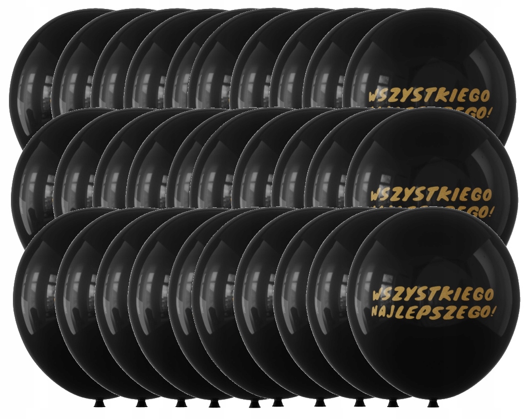 Balony lateksowe czarne złote wszystkiego najlepszego 30 cm zestaw 30 szt.