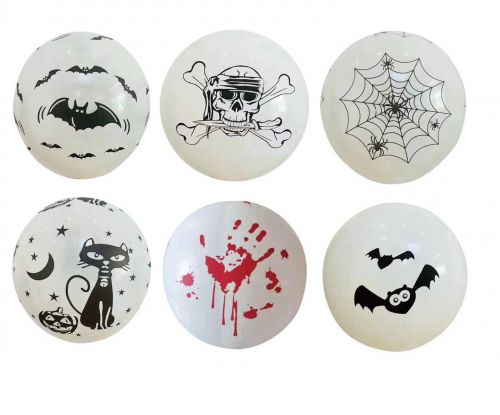 Balony lateksowe halloween białe z nadrukiem 6 szt