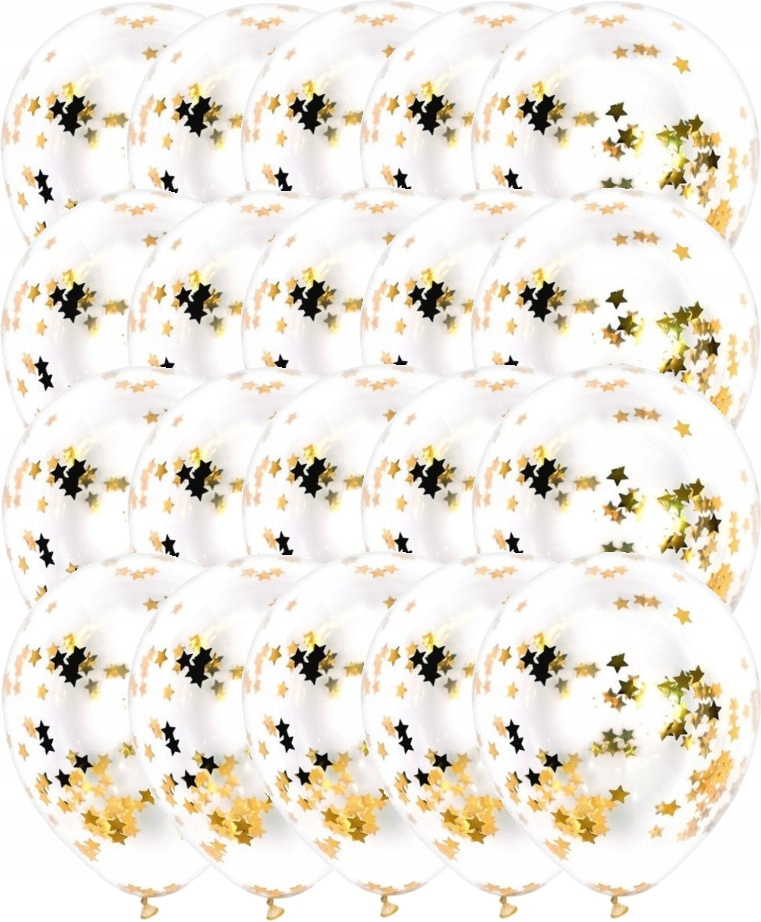 Balony lateksowe przezroczyste ze złotym konfetti złote gwiazdki 20szt 30cm