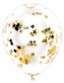 Balony lateksowe przezroczyste ze złotym konfetti złote gwiazdki 50szt 30cm