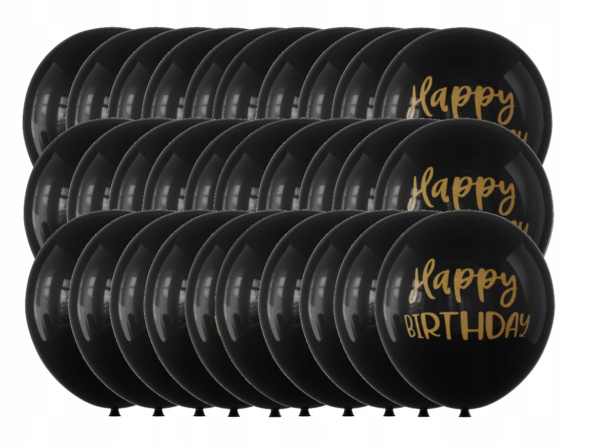 Balony lateksowe urodzinowe czarne złote Happy Birthday 30 cm zestaw 30 szt.