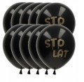 Balony lateksowe urodzinowe czarne złoty napis STO LAT 30 cm zestaw 10 szt.