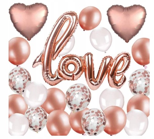 Balony love rose gold białe walentynki wesle ślub