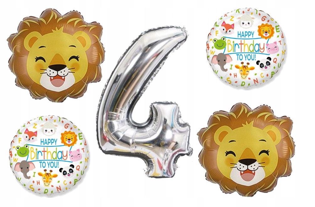 Balony na czwarte cyfra 4 urodziny zwierzęta lew