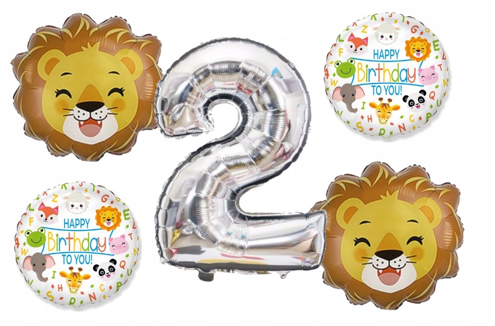Balony na drugie cyfra 2 urodziny zwierzęta lew
